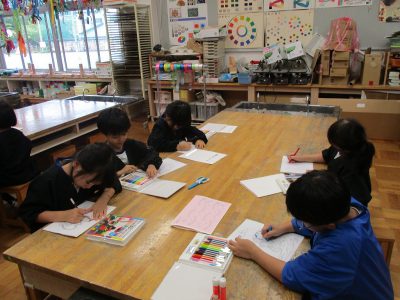 好きな塗り絵を選び、色遣いを考えながら丁寧に塗っていました。