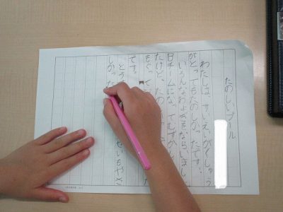 水泳学習後、国語の時間に「水泳学習を終えて」というテーマで作文を書き、水泳学習の振り返りをしました。