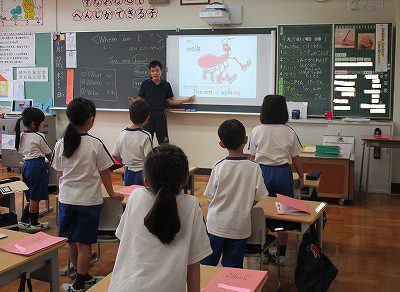 今日の一時間目は、ミスターヨコヤマの「英語文教忍者」で始まりました。