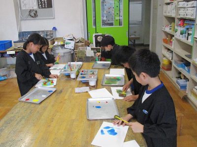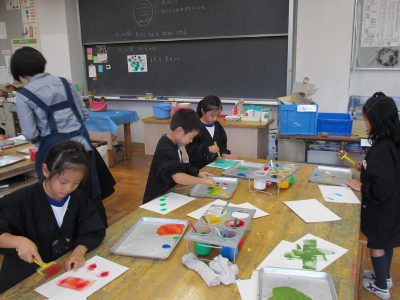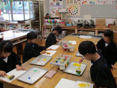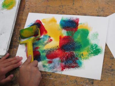 最後は「ペンキやさん」になって、ローラーや絵の具の使い方を楽しく学習しました。