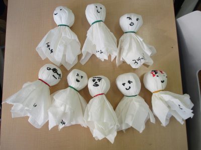 お家で作った「てるてる坊主」を持って来てくれたお友達がいました。