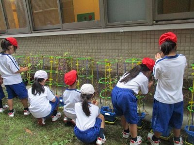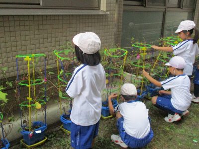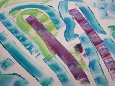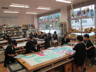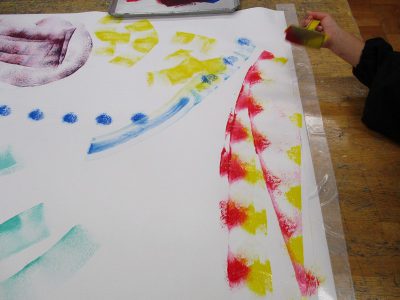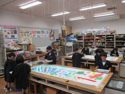 ローラーの使い方や絵の具の色混ぜを学びました。