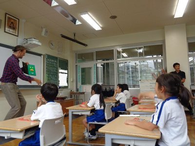 今日は授業のはじめに、ポール先生のお誕生日をみんなでお祝いしました。