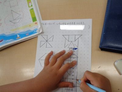 今日は「点と点をつないで、色々な形を作ろう!」というめあてで取り組みました。