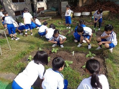 今日は、お家の方に知らせたいことや見せたいものを探しながら、ビオトープや学習園の様子を見に行きました。