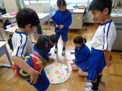 なかなか止まらないボール型のサイコロを順番に回し、盛り上がっていました。