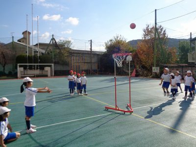 ゴールを使った練習は初めてでしたが、ゴールの位置をよく見て投げていました。