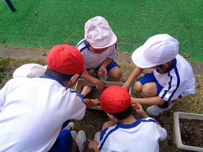 今日は、チューリップの球根を観察した後、球根を植えました。