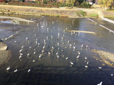 鴨川に出ると、カモメにアオサギ、カモ……たくさんの鳥さんにも出会いました。