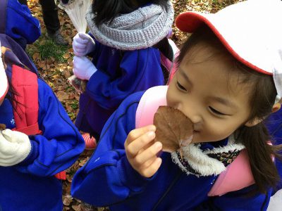 なにやら、おいしい香り!?先生から「カツラの木」の葉っぱのひみつを教わりました。