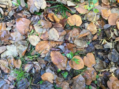 ふかふかの落ち葉の中からも、松ぼっくり!