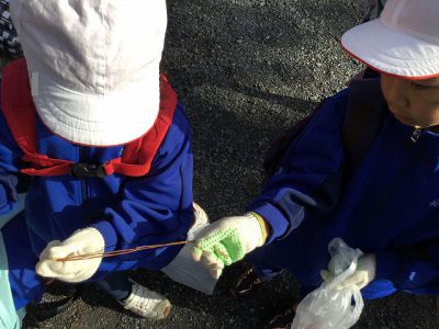 今日は、1年生「てくてく遠足」の日です。25人がそろって、出かけることができました。