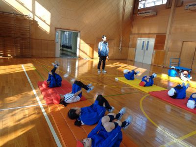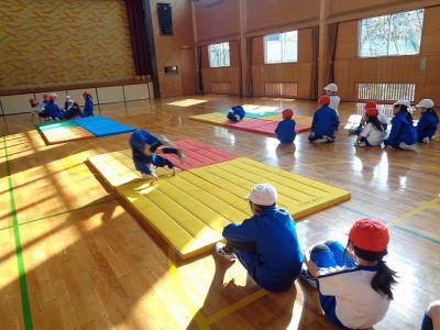 マット運動は「ゆりかご」の練習から始まります。