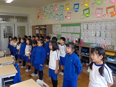 朝の根っこタイムは、家庭学習の計画を立てた後、ありがとうの会で歌う「私たちの班長さん」の練習をしました。