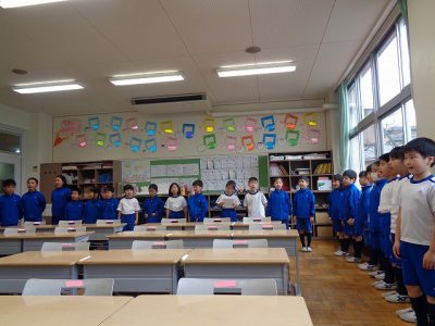 1時間目の学級活動の時間は「ありがとうの会」に向けて、2年生と一緒に練習をしました。