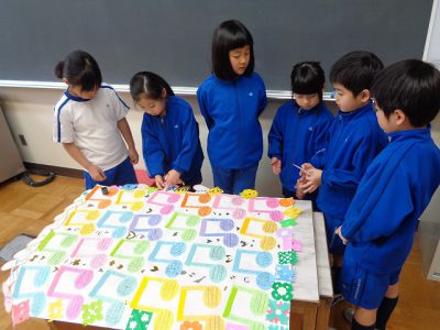 みんなで作った切り紙は、ありがとう掲示係さん(有志)が、休み時間を使って、きれいに貼り付けて仕上げてくれました。