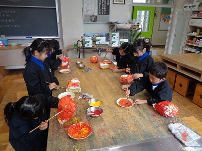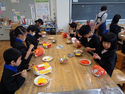 図工の学習で「おめでとうだるま」作りに取り組んでいます。