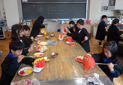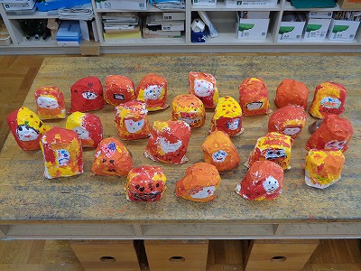 6年生の卒業、新1年生の入学、そして、みんなの進級をお祝いする「おめでとうだるま」が完成です!展示されるのを楽しみに待っていてくださいね。