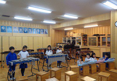 次に、チーム毎に、鉄琴や木琴で、自分が考えた「星の音楽」の練習です。