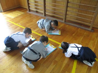 これは、目を閉じて、耳に集中しながら範読を聞いている様子です。