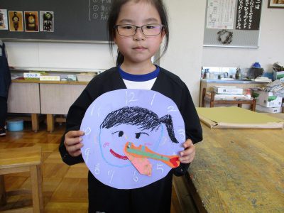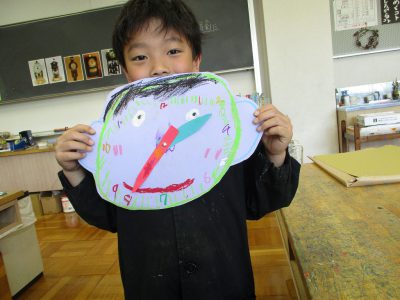 まずは、色画用紙にクレパスで自分の顔を描きました。
