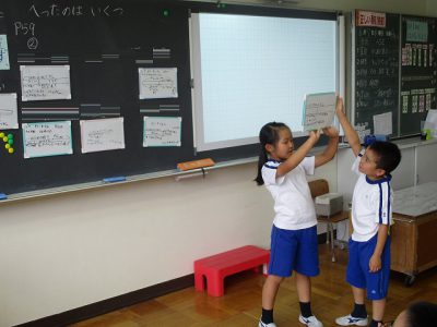 ホワイトボードを使った学習では、ペアで協力できました。