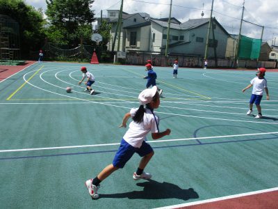 2年キッズならではのルールで、体育の学習だけでなく、放課後も楽しんでいました。