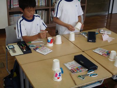 今日の学習では、紙コップロケットを作りました。