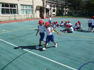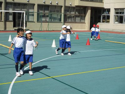スムーズに走るには、どうすれば良いかを1年生と一緒に考えて練習していました。