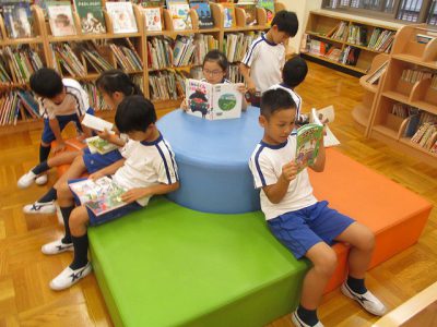 全校体育と低学年演技練習の後に、図書室でゆったり読書をしました。