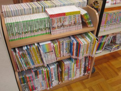図書室には新しいコーナーが並んでおり、子どもたちは目を輝かせて、手にとって読んでいました。