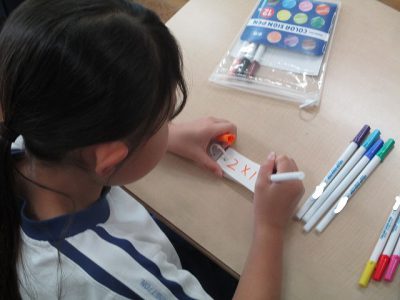 2年キッズ全員が九九を完全暗唱できるように「九九カード作り」をしました。