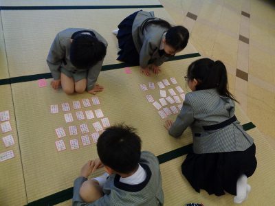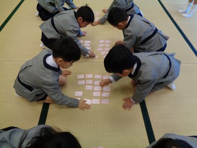休み時間には、カルタ大会を開催しました。