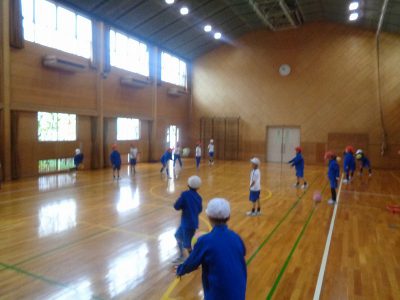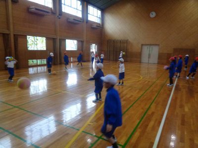 体育の学習は「リズムトレーニング」と「ボール投げ運動」です。