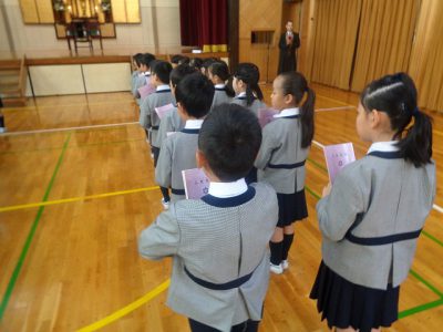 そして、今日は久しぶりの「音読集会~低学年~」でした。