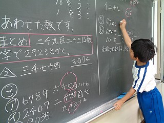 今日は、1000を越える数を「漢数字」で書く学習などを行いました。