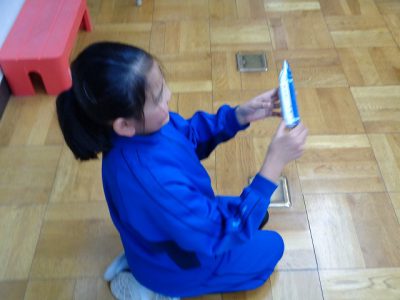 まずは、思い出の品物(幼い頃に使っていた物、着ていた物)をみんなに伝えるスピーチ学習を行っています。