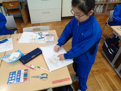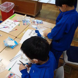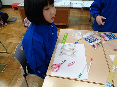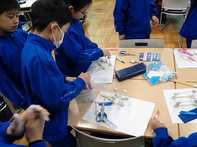 早く完成させた児童は、正方形の組み立ても行い、最後まで集中して取り組んでいました。
