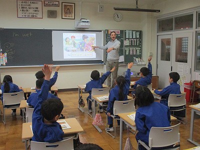 4校時の英語では、ポール先生が、[l]と[r]の違いをそれらの単語を繰り返し発音しました。
