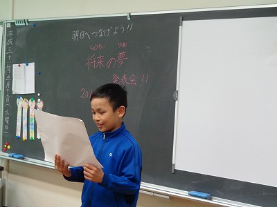次に「将来の夢」を作文に仕立てて、発表会まで学習を進めました。