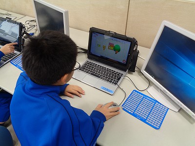 画面上のブロックを組み立てて、命令を作り、キャラクターを動かします。