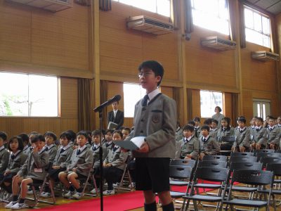 練習が終わり、児童会代表から、新任の先生に「歓迎のスピーチ」がありました。