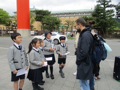 外国の方に尋ねるフレーズを確認した後、すぐに平安神宮の鳥居方面へ・・・。