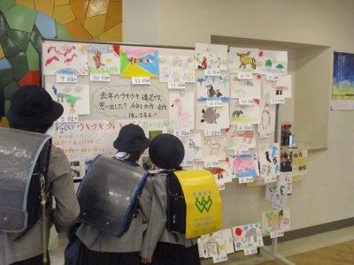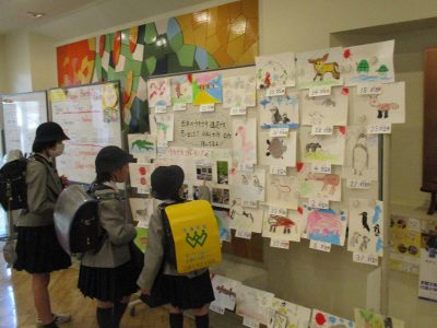 昨年度のウキウキウォーキングで、それぞれの縦割りれんげ班がスケッチした動物の絵です。