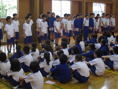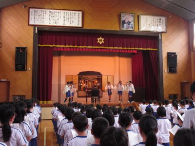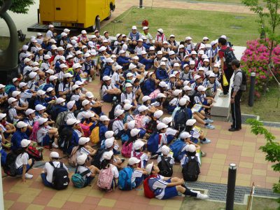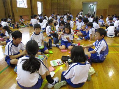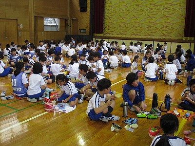 そしていつもの給食の時間に、体育館でお弁当を食べました。