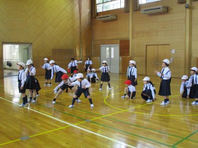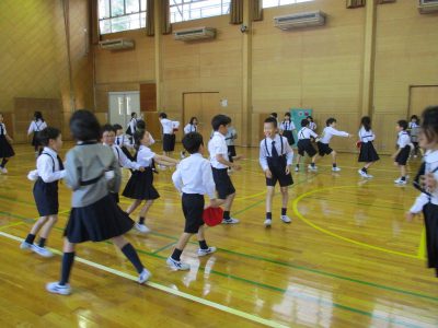 早くから体育館に来た1,2年生に「英語遊びで楽しませてあげよう」というやさしさからです。