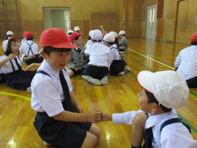 「二人になって・・・」の指示も聞き取り、ペアを作りました。