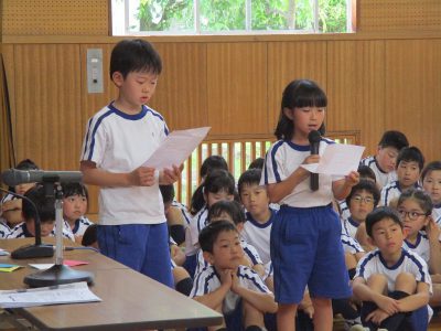 各学年から先月・今月の目標である「人としての基本の行いを身につけよう(朝の入室時も元気にあいさつ)」について、話し合いの報告がありました。