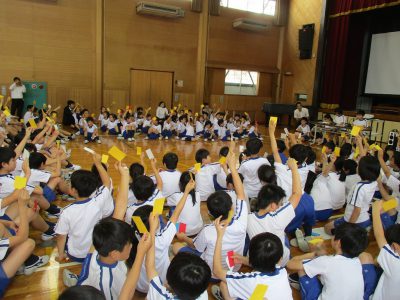 また、「やさしい眼」「やさしい顔」「やさしい言葉」「やさしい態度」で人と接することを聞き、「人の命も、他の人の命も大切にする」ことを誓いました。