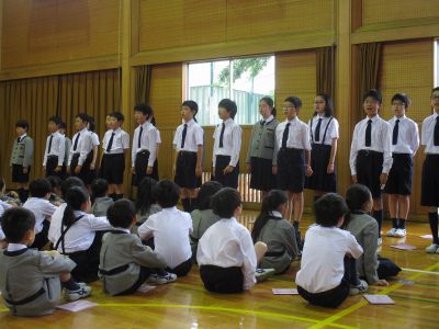 5年生「村の有線放送」6年生「学問のすゝめ」の発表です。